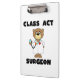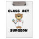 Uma prancheta de design de um médico bonitinho que qualquer cirurgião certamente ama, apresenta um médico urgião de pelúcia com casaco de laboratório e estetoscópio e texto preto que lê Cirurgião de Classe Act em um fundo branco.