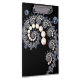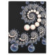 A marfim e as pérolas azuis espiralam dentro de uma espiral sobre um fundo preto.