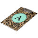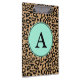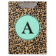 Uma impressão de leopardo decora esta prancheta de na moda. Personalize esta área de transferência alterando a letra do monograma. Use esta prancheta para casa, escola, escritório, etc... A design é da arte original.