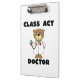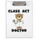 Uma prancheta de design de um médico bonitinho que qualquer médico certamente ama, apresenta um médico ursinho com casaco de laboratório e estetoscópio e texto preto que lê Classe Act Doctor em um fundo branco.