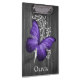 A Área Personalizada da Borboleta Rústica Roxa apresenta uma design que apresenta uma borboleta contra uma folha branca e uma cinza escura de fundo de madeira com um lugar para personalizar com seu nome. Itens adicionais disponíveis com este design também. Entre em contato comigo diretamente para obter assistência com a personalização.