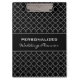 Área de transferência personalizada do planejador de casamento. Emblema personalizado com letra ou nome inicial monograma. Design de padrão de quatrefoil elegante.