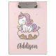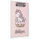 Área de transferência personalizada com bolo de unicórnio pastel arco-íris personalizado com seu nome na tipografia do script de pincel.