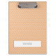 Dê um presente engraçado no escritório com uma divertida prancheta personalizada Chevron Simples Laranja. O design da área de transferência apresenta um padrão e uma área simples que você pode personalizar com seu nome. Ofertas adicionais disponíveis com este design, bem como uma variedade de cores.