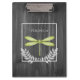 Junte notas e lembretes em uma superfície segura com uma área de transferência personalizada rustica de Dragonfly verde. A design de área de transferência apresenta uma libélula vibrante adornada com folhagem delicada contra um fundo de madeira rústica de cinza escura. Itens de presentes adicionais disponíveis com este design, bem como uma variedade de cores.