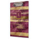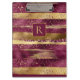 Arrancadas modernas de burgundy e dourado e prancheta de monograma com pinceladas de pincel em burgundy e ouro e confetti.