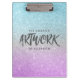 Uma prancheta personalizada, em forma de coração, azul-feminino e roxa. Esta área de transferência tem as palavras "O Trabalho de arte Incrível de" em uma fonte de script de pincel personalizada com seu nome abaixo. Personalize o esboço com o nome de sua escolha para fazer alguém se sentir especial. Excelente para uso com papel de cópia para desenhar. Faz um presente divertido para aniversários ou para o Natal. Vem em uma variedade de cores. Projetado para você pelo Blackberry Boulevard.