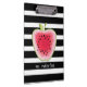 Uma prancheta para os professores que caracterizam uma maçã com um design da melancia. O fundo é listras preto e branco. Personalize o nome.