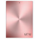O aspecto de metal escovado cor-de-rosa é trabalho de arte. A área de transferência tem um design radial. O texto preto está no canto inferior. Você pode mudar o texto para mostrar o monograma correto.
