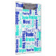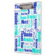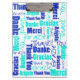 Estas parte dianteira e parte traseira da prancheta mostram a gratitude em uma nuvem multilingue "obrigado da palavra do azul e da turquesa você" em uma variedade de estilos do carácter tipo da pia batismal sobre o branco. Preencha o texto do modelo para mudar a informação traseira ou o clique personaliza para selecionar um estilo diferente do carácter tipo, faz sob medida, e cor ou para selecionar uma cor do fundo a não ser o branco.