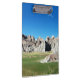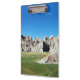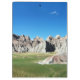 A fotografia mostra a beleza cênica do Parque Nacional das Badlands nesta fotografia. Localizado nas Colinas Negras de Dakota do Sul, o parque é uma maravilha geológica de erodir rabos, espirros e pináculos. O sol lança sombras profundas que enchem fendas, fissuras e fendas como estrias paralelas e cristas em camadas de vermelhos, castanhos, latas e cinzentos. O verde da pradaria mista da National Grasslands e um céu azul claro adicionam cor a esta robusta paisagem de recortes rochosos.