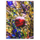 Árvore de Natal e bola de ornamento vermelha coberta de neve fresca. Luz colorida ao redor. Humor alegre e alegre. Feliz Natal E Feliz ano novo. Saudações da temporada. Impressões e presentes para qualquer um por diversão e bom humor. Produtos e lembranças verticais ou de retratos.