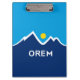 Área de transferência com um design com a bandeira de Orem, Utah. Uma bandeira azul, branca e amarela com picos de montanha e o sol no centro