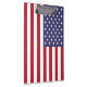 Bandeira americana patriótica, vermelha, branca e design azul.