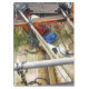 Design de arte de um pequeno barco a remos com equipamento de pesca.