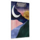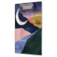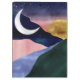 Design de arte da paisagem da lua, moderna, metálica, dourada e prateada, apresentando uma espantosa lua crescente branca e prateada, falso sol metálico dourado, cor rosa e azul escura, gradiente da noite cor azul-rosa e escuro céu com estrelas brancas brilhantes e poeira estelar, montanha verde, montanha rosa, e montanha azul-escura e uma ilustração estonteante do rio azul macio. Arte estética paisagística minimalista do boho.