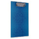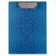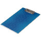 Blue clipboard with a metallic clip, featuring a subtle, abstract dot pattern. The design conveys a modern, professional tone.