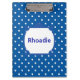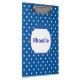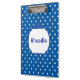 Com um padrão bonito de bolinhas azul e branco, há uma caixa de etiqueta branca para personalizar seu nome dentro. Peça o seu hoje! Trabalho de arte criado por: AMBilustrações http://www.etsy.com/shop/AMBillustrations/