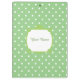 Alerta de bondade!  Esta linda prancheta verde e branca é perfeita para o amante da bolinhas.  Exibindo bolinhas verdes e brancas e um lugar encantador para escrever seu nome no verso, adicionar seu próprio toque exclusivo com fotos, texto, citações etc.