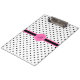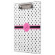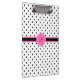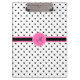Bolinhas preto e branco monograma com prancheta de destaque rosa quente. Um padrão preto sobre bolinhas branca, uma banda preta com uma borda rosa quente e um círculo rosa quente no meio com sua letra personalizada. A letra pode ser alterada.