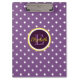 Pranchetas Bolinhas roxas, monogramas, de cor branca
