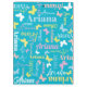 Pequenas borboletas gráficas bonitas, borboletas personalizadas. Este saco tipográfico de texto aqua, azul-macio, rosa, verde, amarelo e coral pode também ser personalizado com seu próprio nome abreviado, lê atualmente Ariana. Outros nomes e cores disponíveis ou contacte-me para pedidos de nome. Arte original e design por Sarah Trett para www.mylittleeden.com