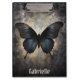 Uma linda borboleta azul e preta em um fundo verde texturizado cria uma bela prancheta estilo gótico. Personalize com seu nome na parte inferior. O dorso é preto sólido.