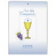 Receber comunhão pela primeira vez é uma ocasião muito especial. Este presente de parabéns, lembrança, doação e festa essenciais para um garoto em sua Primeira Comunhão Sagrada será perfeito com o cálice, o hospedeiro e as uvas com fundo azul macio.