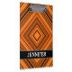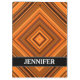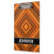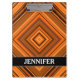 As características deste design da prancheta um teste padrão abstrato dos quadrados coloriram várias máscaras das cores como marrom e a laranja. Igualmente caracteriza um nome feito sob encomenda.