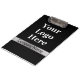 Uma imagem de exibição está no topo. Você pode substituir a imagem pelo logotipo de sua empresa. Uma fita de prata falsa (não em folha) está debaixo da imagem. O texto preto está na faixa. Você pode editar o texto para mostrar sua mensagem personalizada.