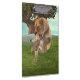 Renderização digital em 3D de um leão fêmea caçador no fundo da floresta verde
