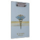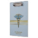Design profissional elegante para fins médicos, com símbolo precioso azul claro e amarelo Caduceus sobre fundo azul claro e limpo com tiras de folha de ouro falsas. Perfeito para qualquer empresa relacionada com a indústria da saúde: prática médica, consultório médico, consultório médico, indústria farmacêutica, farmácia, clínica e hospital. Para o funcionarios hospitalar, funcionários da clínica, médicos, enfermeiras registradas; classe, nobre, elegante e precioso.
