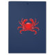 Área de transferência de tendência com um caranguejo vermelho grande em fundo azul.Você pode personalizar este design com seu assunto, monogramas, iniciais ou nome ou remover o texto. Clique em Personalizar para alterar as fontes e cores do texto para criar a sua própria design única. Presente ideal para voltar à escola
