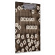 Apresentando azulejos de cartas que soletram Carpe Diem, "agarram o dia", e um arranjo de outras letras aleatoriamente num conselho de jogos, semelhante ao popular jogo de palavras Scrabble.