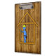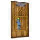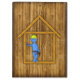 Para algum trabalhador manual, trabalhador da construção, ou carpinteiro. Trabalhador da construção ilustrado dos desenhos animados com a correia do capacete de segurança e da ferramenta dentro do quadro para uma casa.