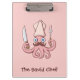 Cartoon de chef rosa com bigode segurando faca e garfo de cozinhar. Cor de fundo personalizada. Custom Text. Um padrão perfeito no lado de trás.