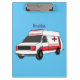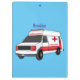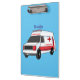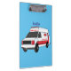Esta feliz ambulância vermelha está a caminho de ajudar! Desenhado no estilo de desenho animado.