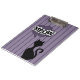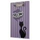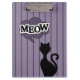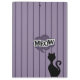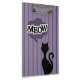 O desenho do gato preto bonito cita o miau em fundo de faixa roxa