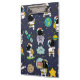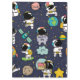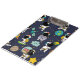 Um gráfico do astronauta clipart, Outer Space: astronauta segurando o balão como um planeta, um foguete, estrelas, ícone de OVNI, ícone de satélite espacial, planeta Saturno, nave espacial e outros. Sobre fundo azul de Oxford (azul marinho).