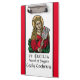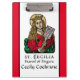 Rua. Cecília com Conselho Hymn é uma versão moderna colorida de um velho corte de madeira de The Nuremberg Chronicle (Liber Chronicarum). Escrito por Hartmann Schedule, The Chronicle é um relato ilustrado e enciclopédico da história mundial até o final do século 15 (e além do último julgamento). Seu conteúdo derivou de mitologia, Bíblia e várias Crônicas medievais. Foi publicado na cidade de Nuremberg por Anton Koberger em julho de 1493 em latim e, alguns meses depois, em dezembro, em alemão vernáculo. O Cronicle é notável por seu uso inédito de ilustrações: foram produzidos 645 pedaços originais de madeira para sua publicação. Enquanto muitos pedaços de madeira foram reutilizados mais do que uma vez no texto com as legendas simplesmente mudadas, no entanto, o volume ostenta 1089 fotos em toto. Algumas cópias têm ilustrações contemporâneas coloridas à mão. + Nas edições originais de The Chronicle, Rua. A imagem de Cecilia fica virada para a esquerda, erro do artista que cortou o bloco de madeira depois da design original do artista. Assim, o texto "lê" para trás. Viajámos a imagem para que a Rua, Cecilia se virasse para a direita, e o escrevendo no conselho Hymn fosse retratado corretamente, apesar de ilegível. Apesar do seu voto particular de virgindade, a Rua Cecilia foi forçada a um casamento arranjado - nunca consumado - com um pagão chamado Valerian. Diz-se que no dia do seu casamento, a Rua Cecilia "cantou em seu coração para o Senhor" em vez de se revelar com os seus convidados. Como resultado, muito antes de se associar aos órgãos da arte, uma tradição iconográfica que surgiu na Itália no século 14 e se baseava talvez numa leitura errada de uma linha em seu Passio, Rua. Cecília estava associada a cantar e cantora. Assim, essa ilustração alemã do século 15 dá a ela um conselho de Hymn como atributo. Como aqui, tais conselhos de mão tinham originalmente as linhas de abertura de um hino que seria cantado durante um serviço religioso. Os atuais conselhos de hinos suspensos ou de parede são postados por números, em vez disso, números que coincidem com o hino de uma dada congregação. + Inverso: Música encantadora para o Gradual da Massa Latina para as Ruas. Dia da Cecília. A letra dizia "Audi, fília, et vide, et inclína aurem tuam: quia concupívit Rex spéciem tuam, Spécie tua et pulchritúdine tua inténde, próspere procéde et regna", ou seja, "Ouça, Ó filha, veja, e incline o seu ouvido: o rei desejou ardentemente a sua beleza. Com sua beleza e comeldade estabelecidas, prossigam prósperamente e reinem". + Banquete: 22 de novembro + Crédito de Imagem (Rua. Cecília com Conselho Hymn): Esta versão colorida do corte de Nuremberga é um Santo_Aplenty Exclusive (SAE).