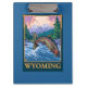 A cena da pesca com mosca - Wyoming - poster das viagens vintage foi criada em 2007. Esta imagem descreve cenas de Wyoming.