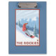 A cena do Snowboarder - as Montanhas Rochosas - poster das viagens vintage foi criada em 2007. Esta imagem descreve cenas das Montanhas Rochosas.