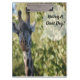 Área de transferência da Girafa Uma bela pose de girafa olhando diretamente para a câmera. Maravilhosa prancheta para família e amigos que amam girafas. Personalize com seu próprio texto. Classificado na família Giraffidae Por celeste@khoncepts.com
