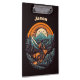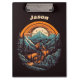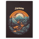 Ciclismo Vida, retrorreflecção em laranja e azul de um ciclista andando pelas montanhas e pela floresta com o sol ao fundo