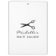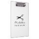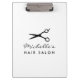 Clipes personalizados de salões de cabelos para hairstylist. Área de transferência de cabeleireiro para cabeleireiro e salão. Design de conselho de clipe personalizado com o logotipo de tesoura barbeiro e a tipografia de script elegante. Fornecimentos comerciais e acessórios para spa clássico, salão de beleza, barbeiro comprado, cabeleireiros, maquiadores, empresas de serviços capilares, etc. Acessório de trabalho/funcionarios de trabalho para notas de fazer. Fundo de cor personalizado.