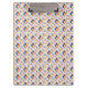 Colorful clipboard with geometric pattern featuring orange, blue, and yellow elements on white. Shown from front and left side, creating a vibrant visual appeal.