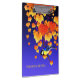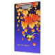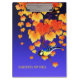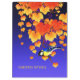 Cena de queda: videiras de uva selvagem com laranja, vermelha, folhas de ouro e bagas de uva púrpura. Um excelente sentado num galho. Nome personalizado, fonte tradicional escrita à mão. Azul, amarelo claro, preto. Cores frias do outono, bonitas e vívidas. Trabalho de arte baseado em uma impressão de arte japonesa antiga. Excelente de Ação de Graças, mas também a qualquer momento.
