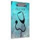 De turquesa médica do mármore do estetoscópio da enfermeira a prancheta feita sob encomenda é uma maneira à moda do divertimento de manter junto seus papéis importantes. Este design foi criado por uma foto pessoal da rocha do mármore do azul de turquesa com uma silhueta preta do estetoscópio coberta na parte dianteira e na parte traseira da prancheta. Grande ideia do presente para enfermeiras em um aniversário, no dia da enfermeira, na graduação, no feriado ou na alguma ocasião.