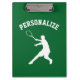 Personalize a prancheta dos esportes do costume dos acessórios do treinador de tênis. Adicione seu próprio nome, nome da equipe ou nome do clube. A ideia agradável do presente para o treinador do segundo grau, mamã, pai, caçoa a liga, o logotipo da silhueta do jogador de ténis das equipes etc. com modelo desportivo da tipografia. O conselho de grampo verde ou feito sob encomenda do fundo da cor. O dobro tomou partido impressão.