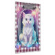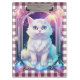 Pranchetas Cristal Gatinho Branco de Xadrez Preta e Roxo